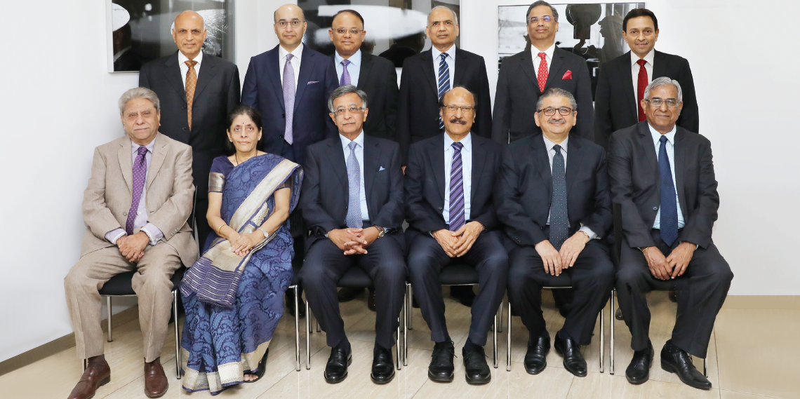 Sitting (left to right): Mr. S M Thakore, Mrs. Lalita D Gupte, Mr. B N Kalyani, Mr. Pratap G Pawar, Mr. Vimal Bhandari, Mr. P H Ravikumar