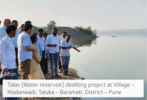 We initiated five water conservation projects in Ahmednagar district, with the most significant one in Aakhegaon (taluka Shevgaon), undertaken with the help of Jankalyan Samiti Dakshin Nagar. It contributed to a significant increase in water storage capacity. This enabled the villagers to irrigate their farms, leading to five times increase in onion produce. Furthermore, the river silt was used to construct internal roads. The project improved the income levels and standard of living of villagers.